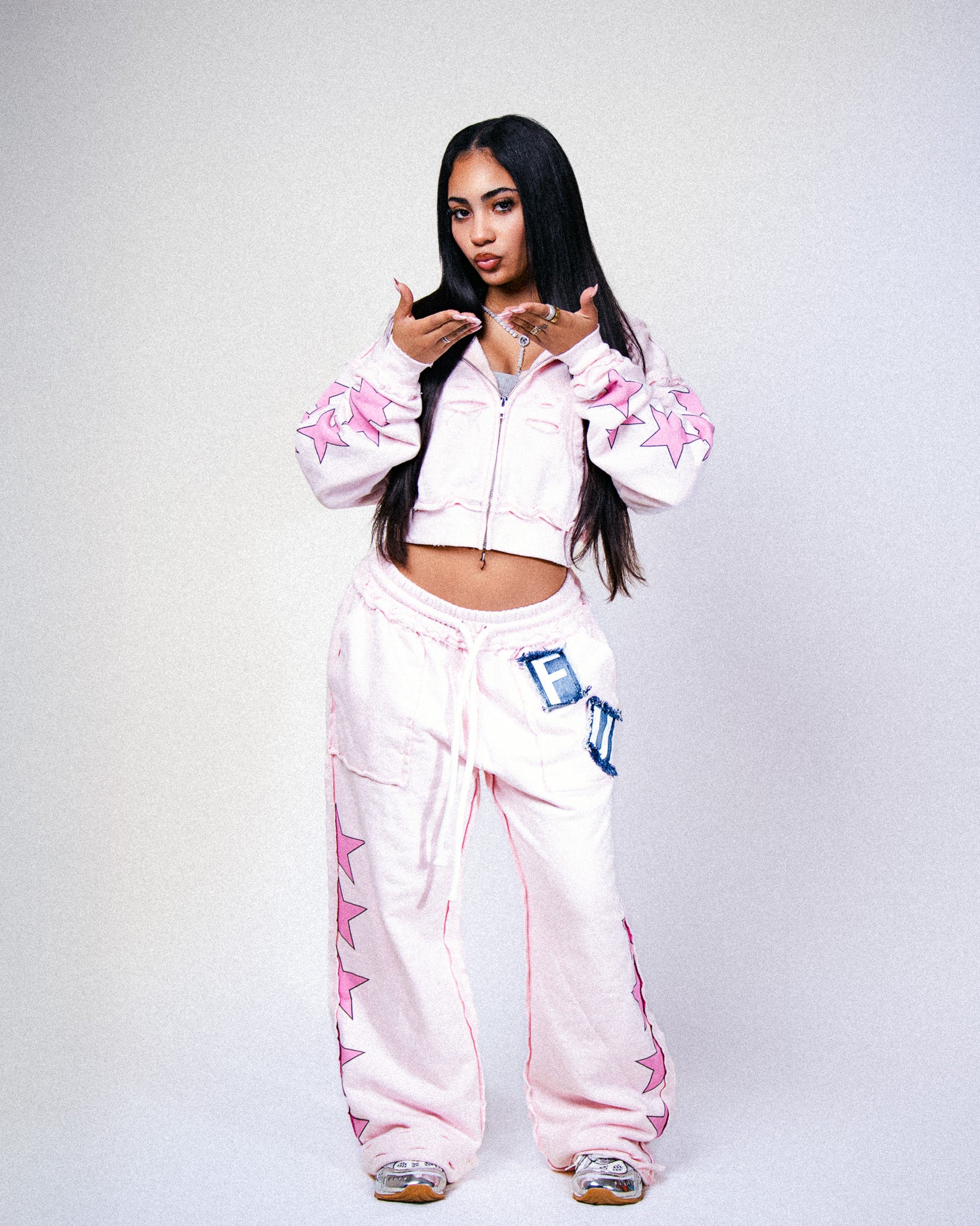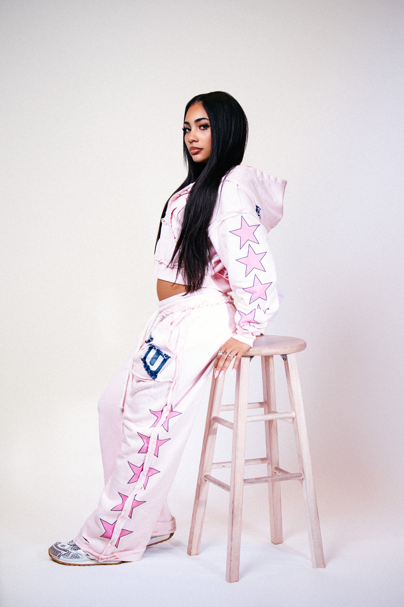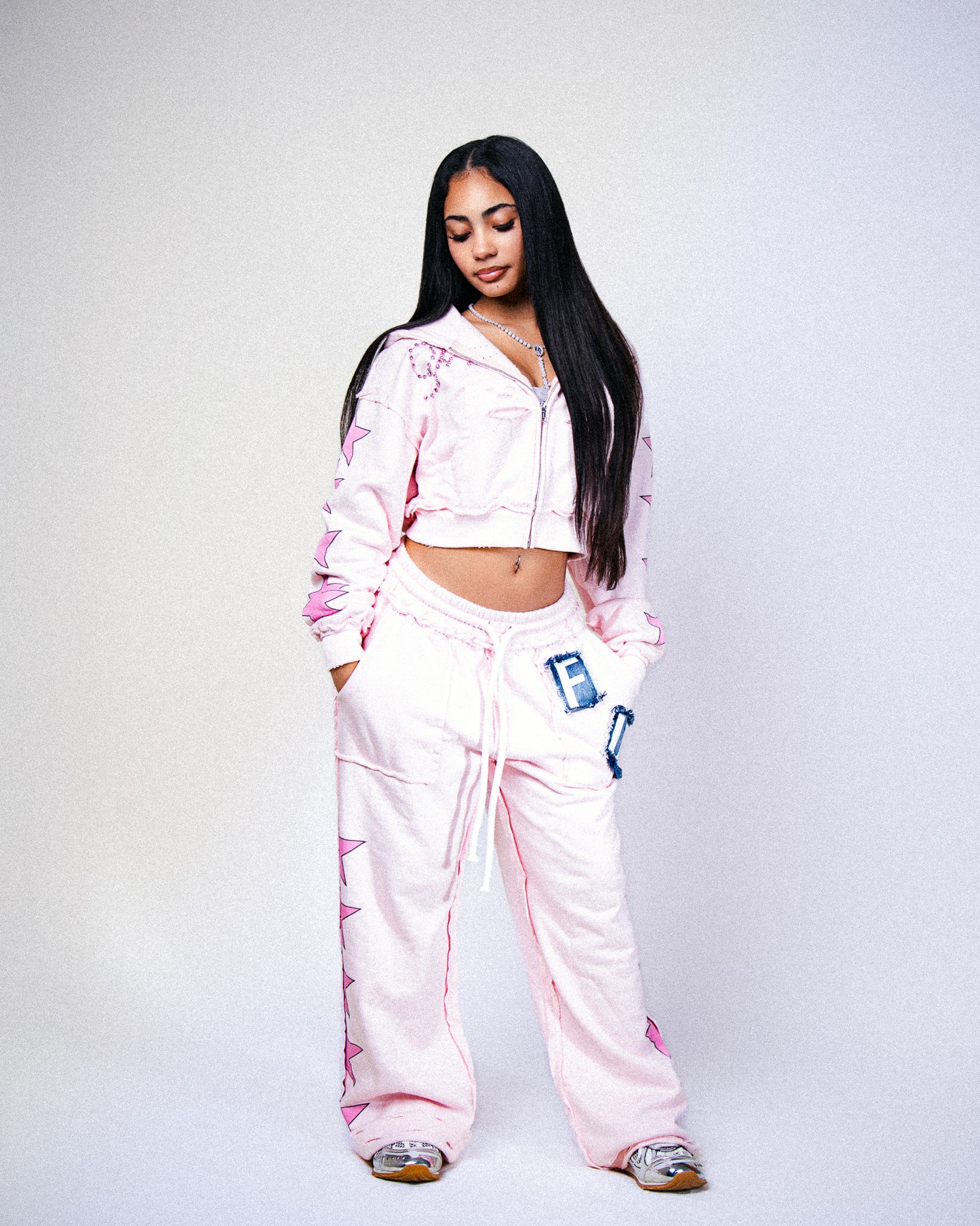 PANTS ARE UNISEX/BAGGY AND HAVE HEEL DRAG. MODEL IS WEARING A SMALL