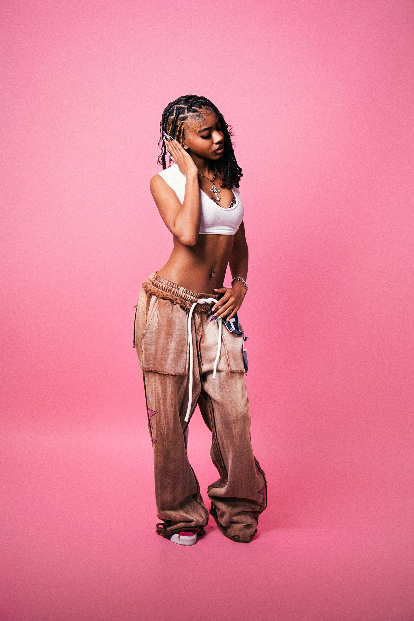 PANTS ARE UNISEX/BAGGY AND HAVE HEEL DRAG. MODELS ARE WEARING A SMALL