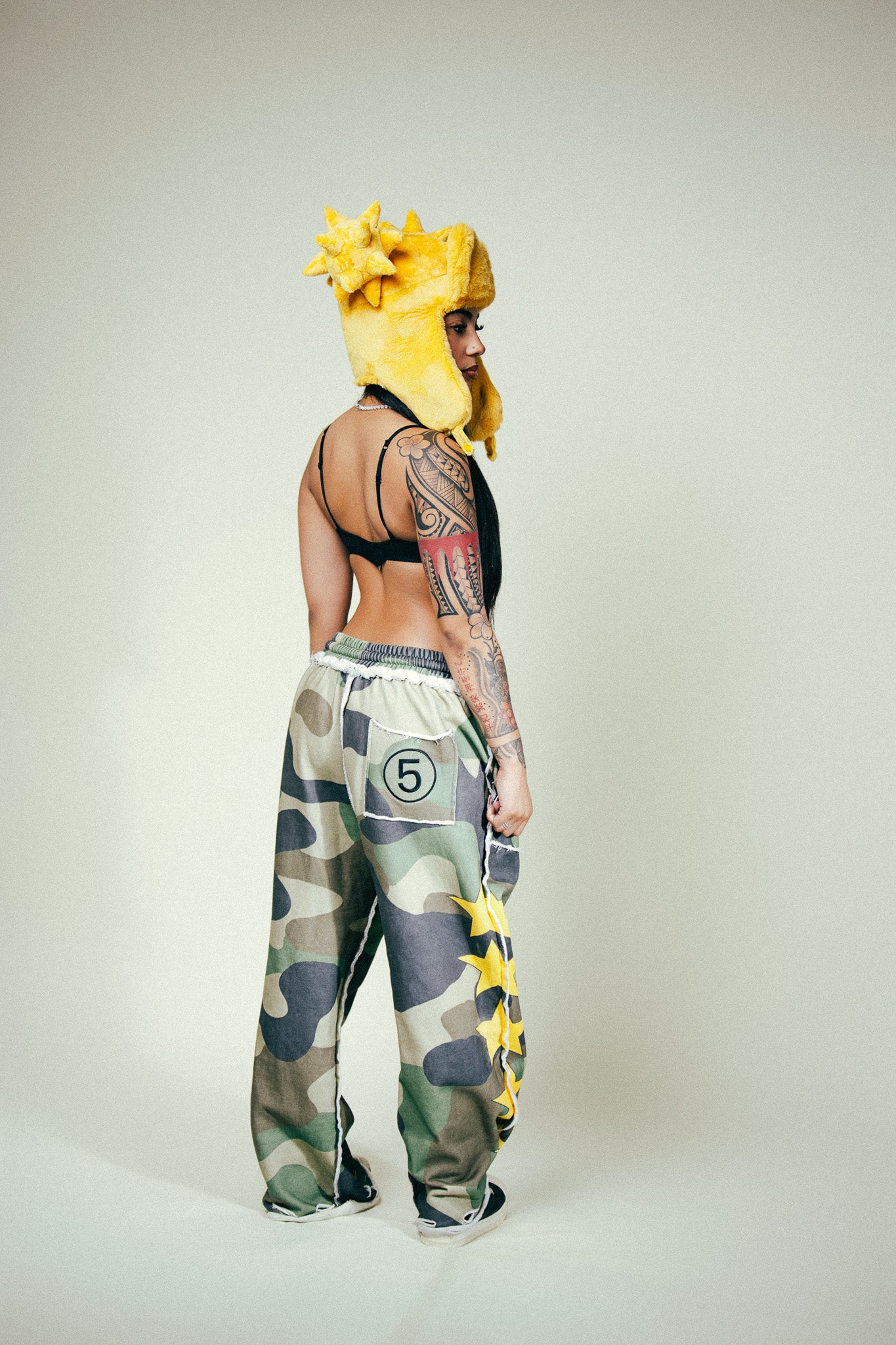 PANTS ARE UNISEX/BAGGY AND HAVE HEEL DRAG. MODELS ARE WEARING A SMALL