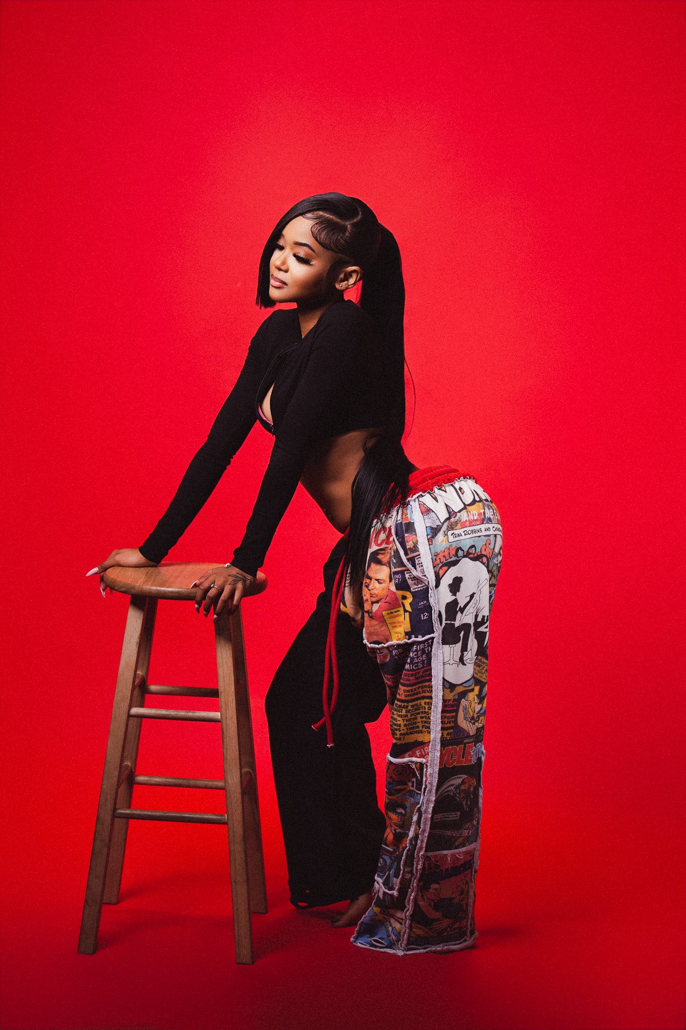 PANTS ARE UNISEX/BAGGY AND HAVE HEEL DRAG. MODEL IS 5'3 WEARING A SMALL.